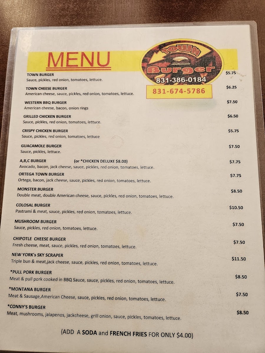 Walking into Town Burgers feels like stepping into the kind of local diner people wish they had grown up with. The smell of sizzling beef hits first, followed by the sound of orders being called out and a steady buzz of regulars chatting over lunch. Located at 16 El Camino Real B, Greenfield, CA 93927, United States, this spot has quietly built a reputation that goes beyond just good burgers. It’s the type of place where food feels honest, portions are generous, and nobody is trying to be something they’re not.